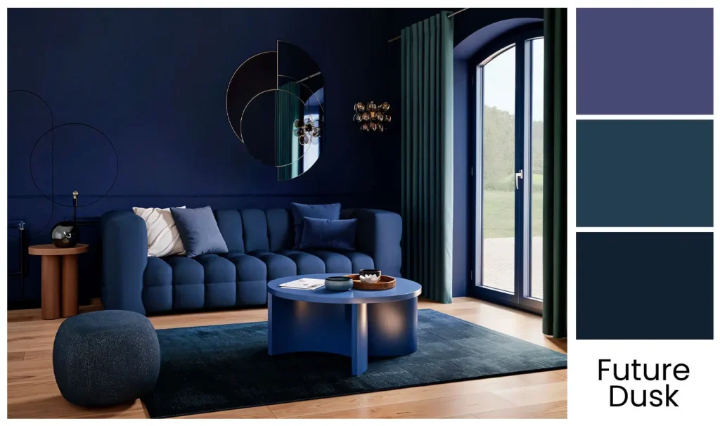 Parmi les incontournables de 2025, la teinte Future Dusk s’impose comme une valeur sûre. Ce mélange subtil de bleu nuit et de violet apporte profondeur et mystère à vos espaces. Peignez un mur principal avec cette nuance et ajoutez des accessoires colorés pour un effet saisissant.
