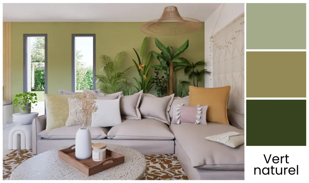 🌱 Matériaux naturels : Associez cette couleur à des textures comme l’osier, le rotin ou la jute. Ces éléments chaleureux équilibrent l’atmosphère et renforcent le côté accueillant de votre intérieur.