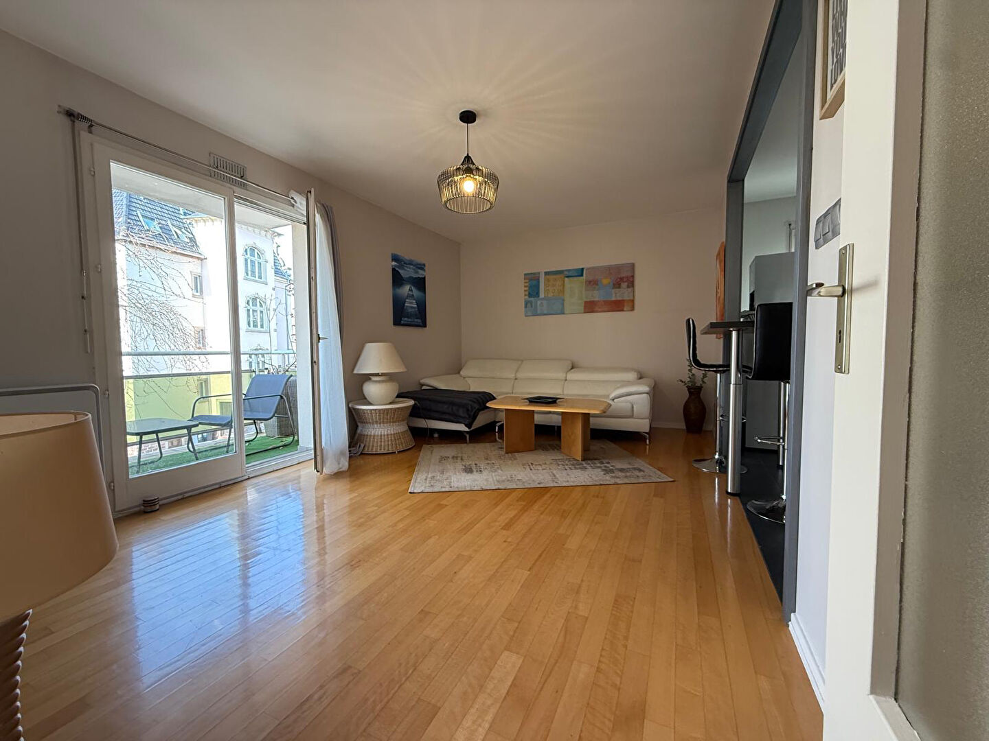 Bel appartement 2 pièces meublé de 48,20m2 au 2ème étage avec ascenseur composé d'une entrée avec placards - une cuisine équipée et aménagée ouverte sur le séjour avec accès sur le balcon - une chambre - une salle de bains et un WC séparé.