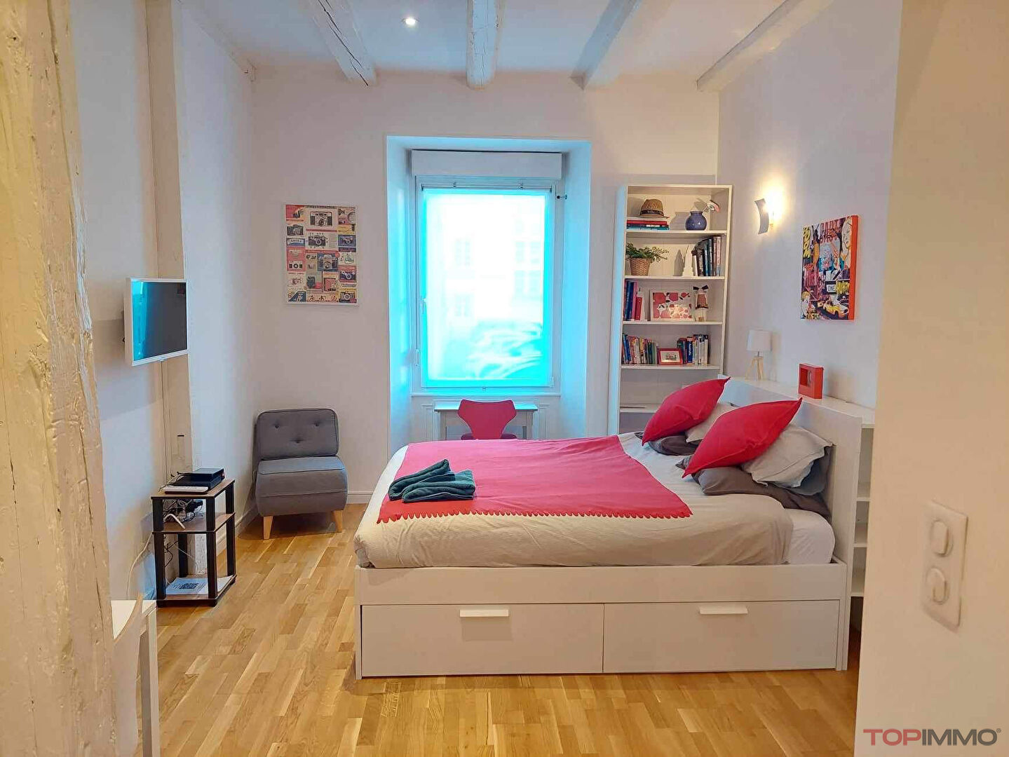Lumineux studio meublé situé au rez-de-chaussée surélevé.