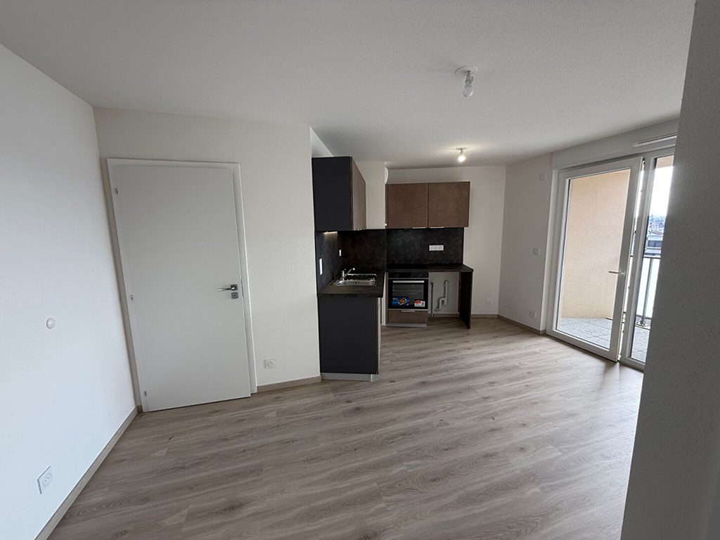 Il comprend une entrée avec placards intégrés, une cuisine équipée ouverte sur salon, balcon, une chambre et une salle d'eau avec WC.
