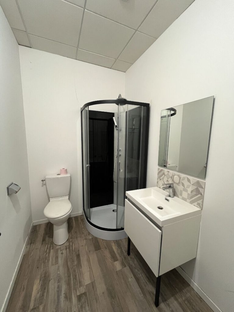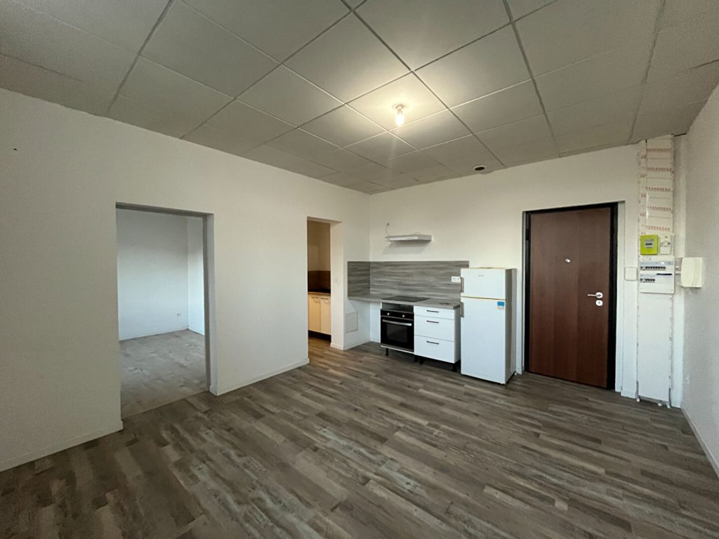 Il comprend : Une cuisine équipée (four, plaque, hotte) ouverte sur séjour, chambre, salle d'eau avec WC.