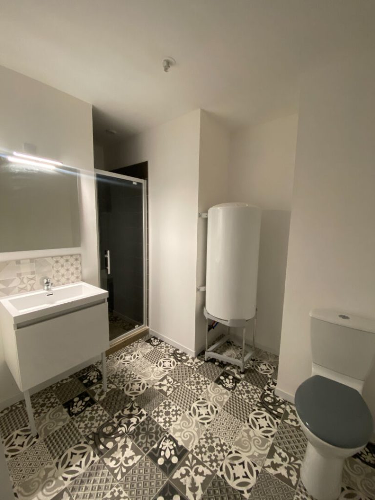 Il comprend : Une entrée avec placards, cuisine ouverte sur séjour, une chambre, salle d'eau + toilettes.