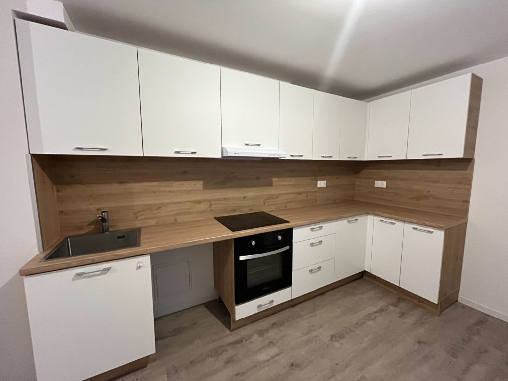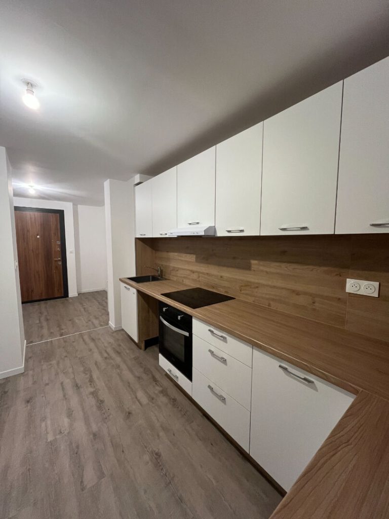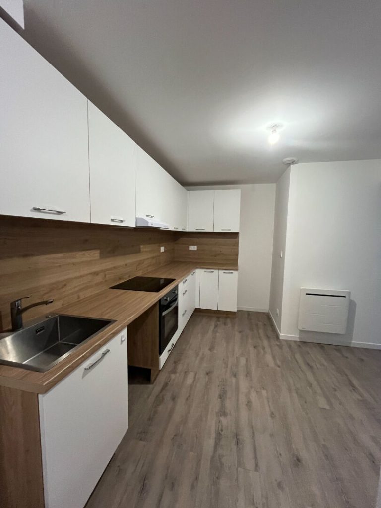 Il comprend : Une entrée, cuisine équipée (four, plaque, hotte), séjour, salle d'eau, toilettes individuels, 3 chambres + petit coin bureau.