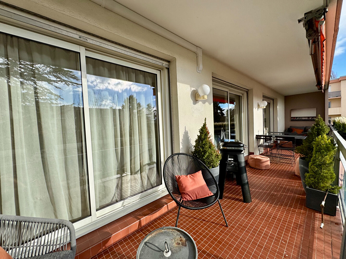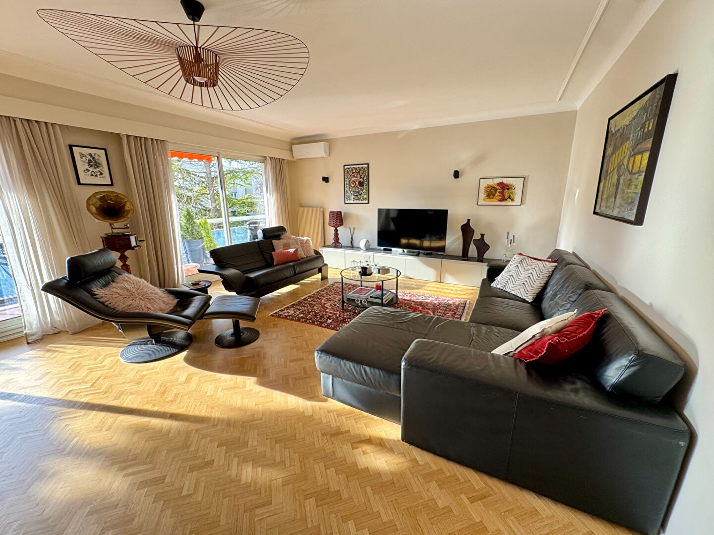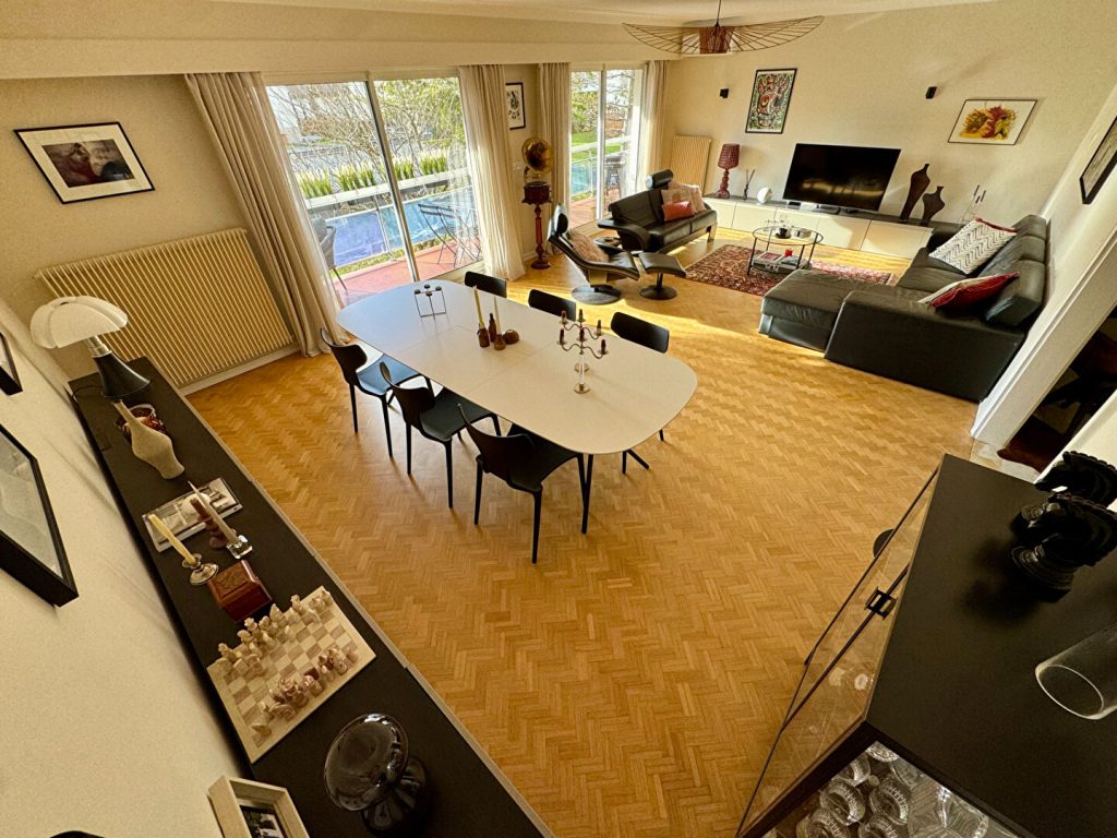 Ce bien spacieux et lumineux dispose d'un vaste salon-séjour de 40 m2 donnant accès à une terrasse orientée sud de 20 m2 , d'une cuisine ammenagée et fonctionelle, de trois chambres dont une avec point d'eau attenant, ainsi que d'une salle de bains et un WC indépendant.