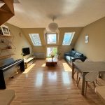 L'appartement se compose d'un bel espace de vie avec cuisine ouverte, deux chambres, une salle de bains, et une cave.