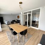 Un espace salon séjour aux volumes généreux avec accès à sa terrasse et vue sur le parc ,