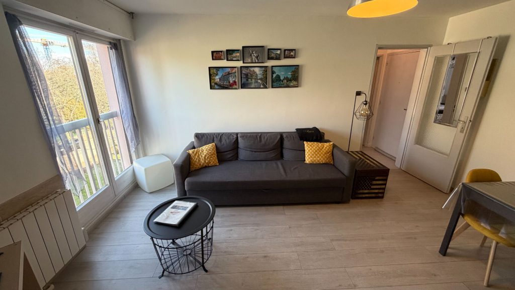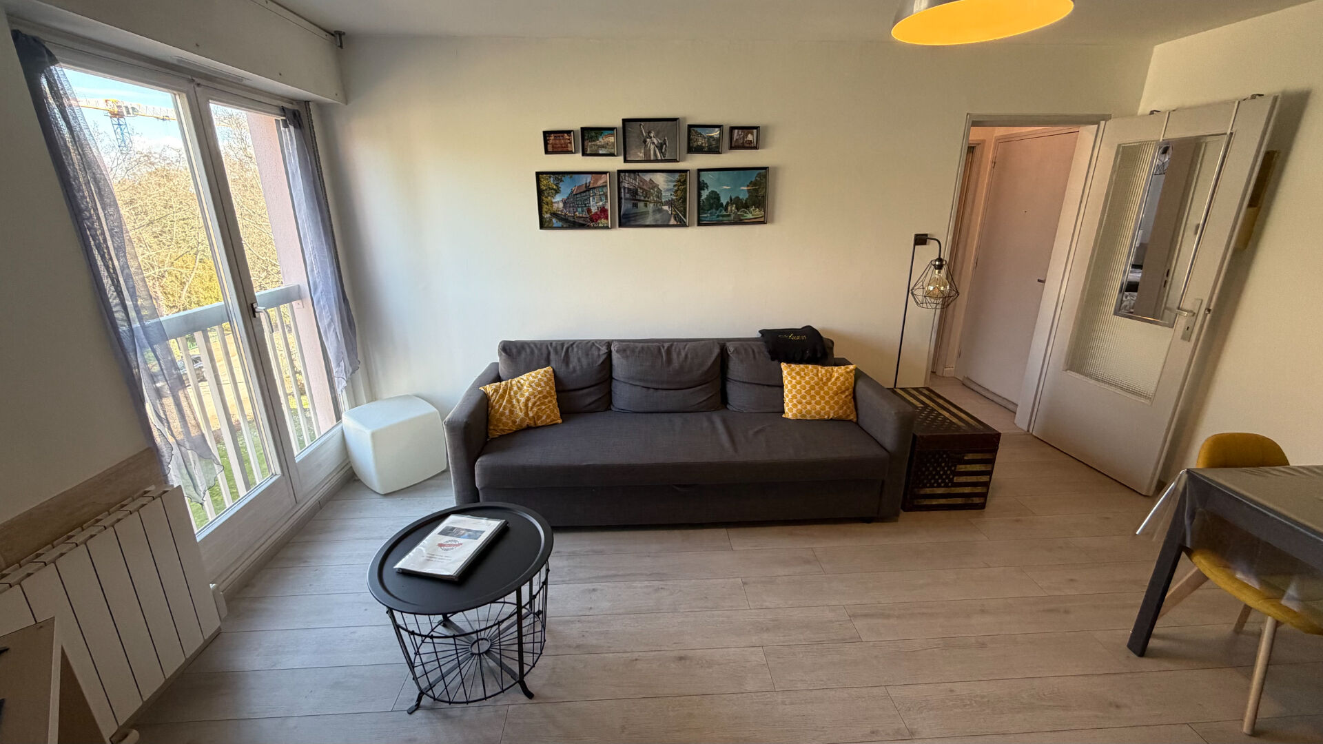 Au coeur du quartier résidentiel, proche du marché couvert, dans la rue Bartholdi, découvrez cet appartement avec son espace de vie, sa cuisine équipée, sa chambre et sa salle de bain.