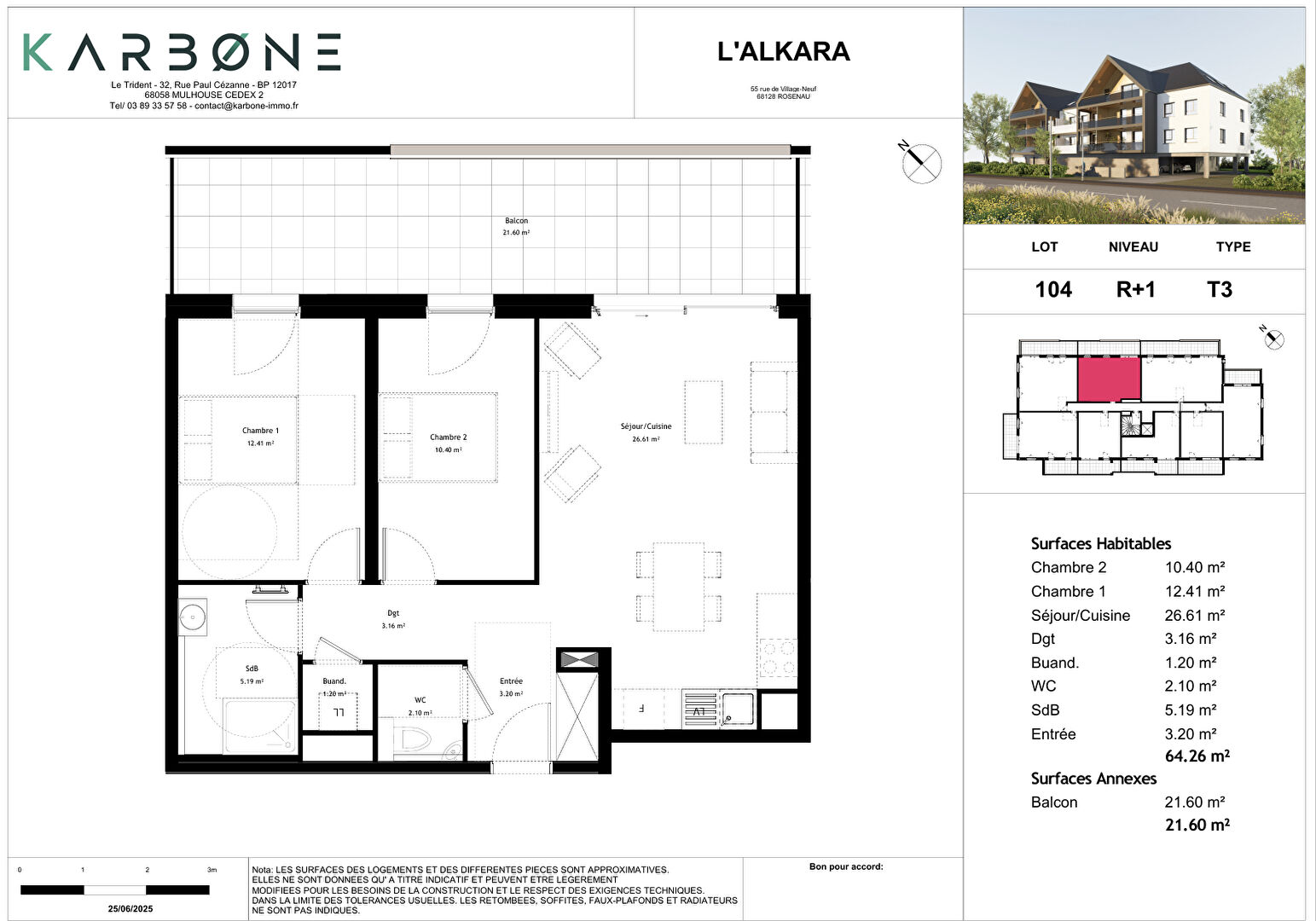 Surface : 64.26 m²