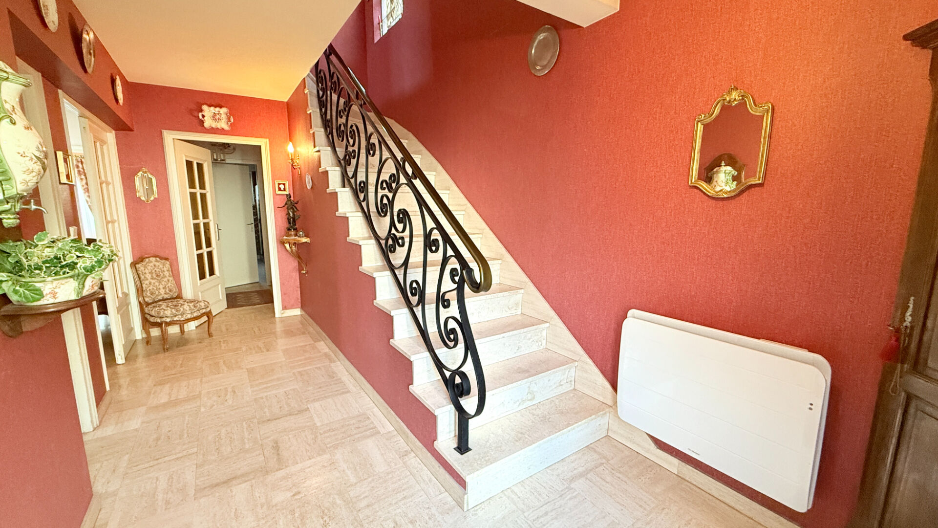A l'étage : un palier desservant, trois chambres, deux petites pièces à chaque extrémité, parfaites pour un bureau, dressing ou espace de rangement et WC.