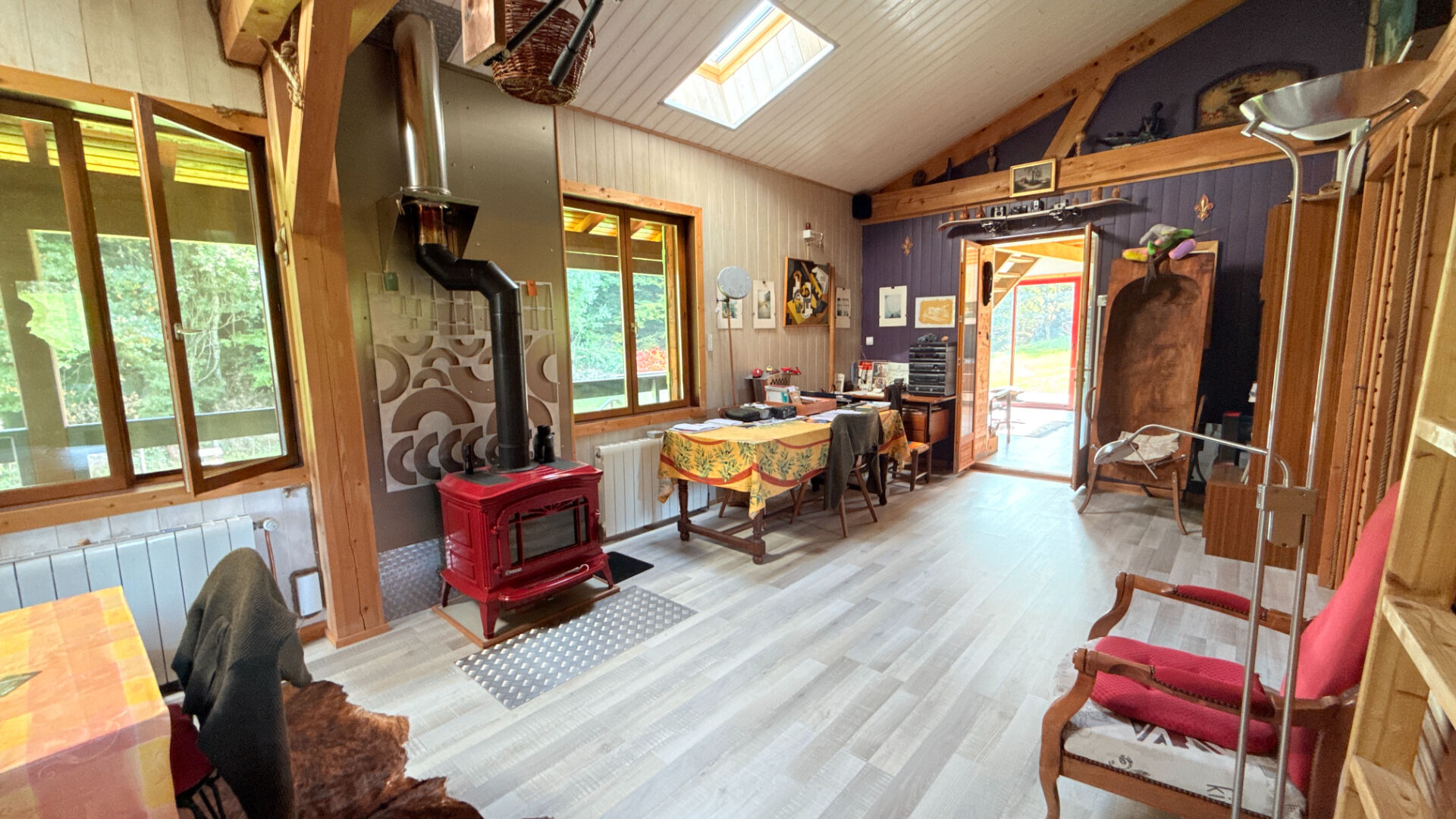 A l'extérieur, vous profiterez d'un vaste terrain arboré, au calme, sans vis-à-vis, idéal pour les amoureux de la nature.
