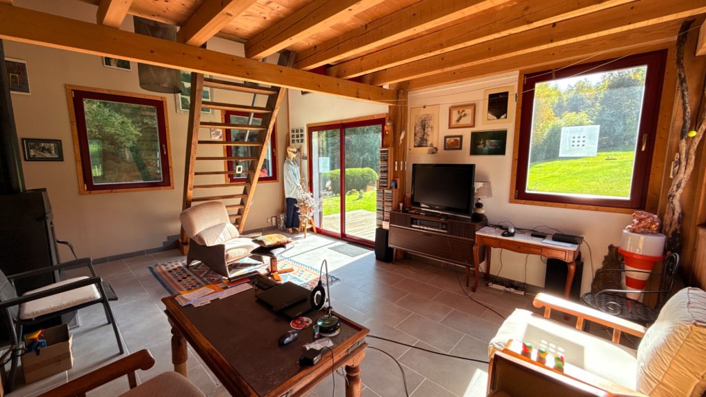 La maison principale est un chalet d'environ 110 m² habitables, élevé sur sous-sol complet, offrant charme et confort :