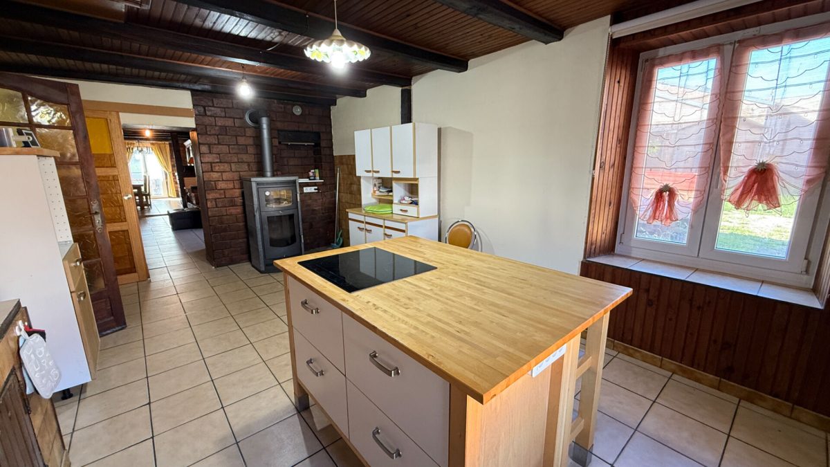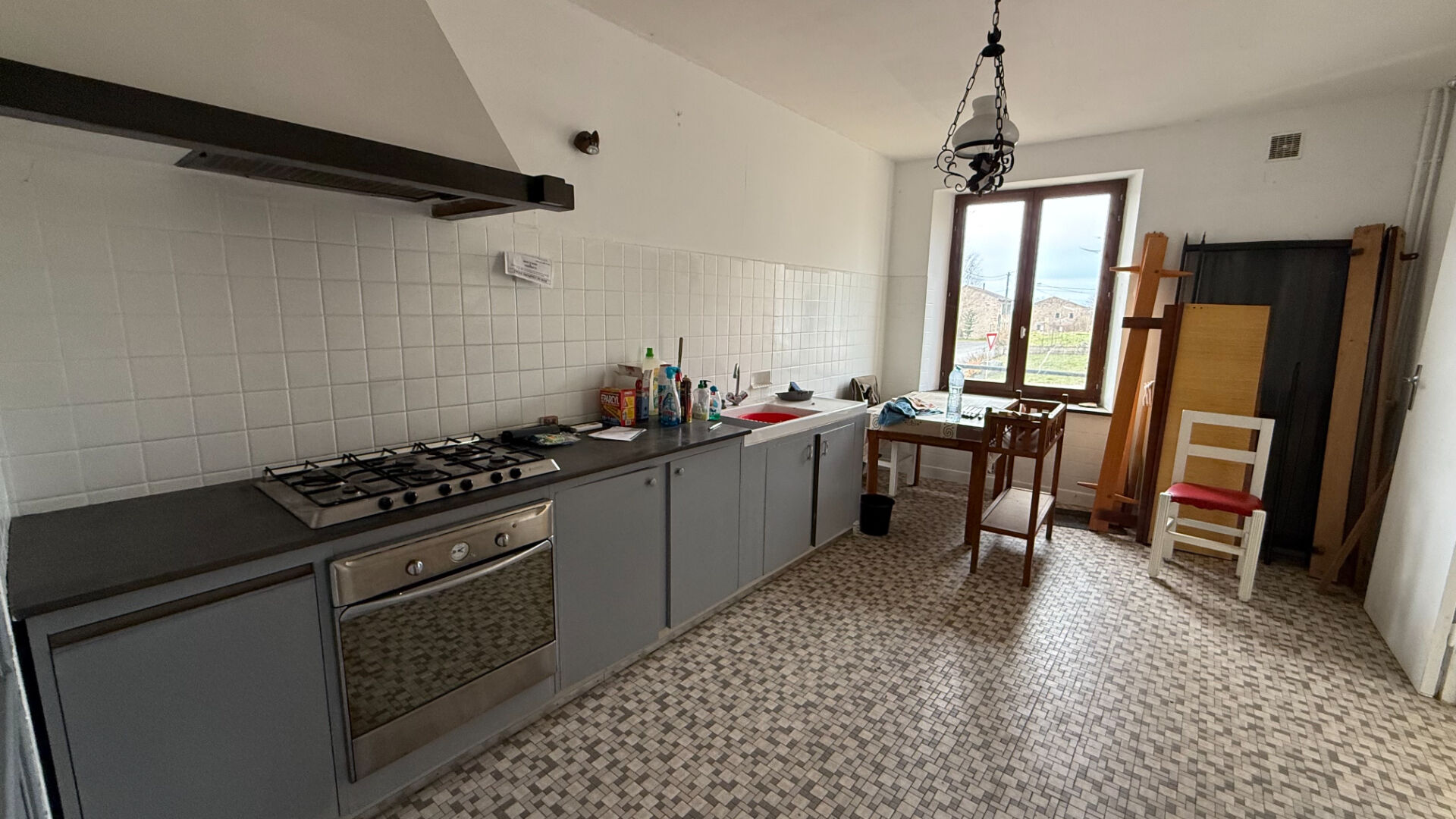 Au rdc : entrée, un salon, une cuisine, salle de bain, wc et une cours avec dépendance.