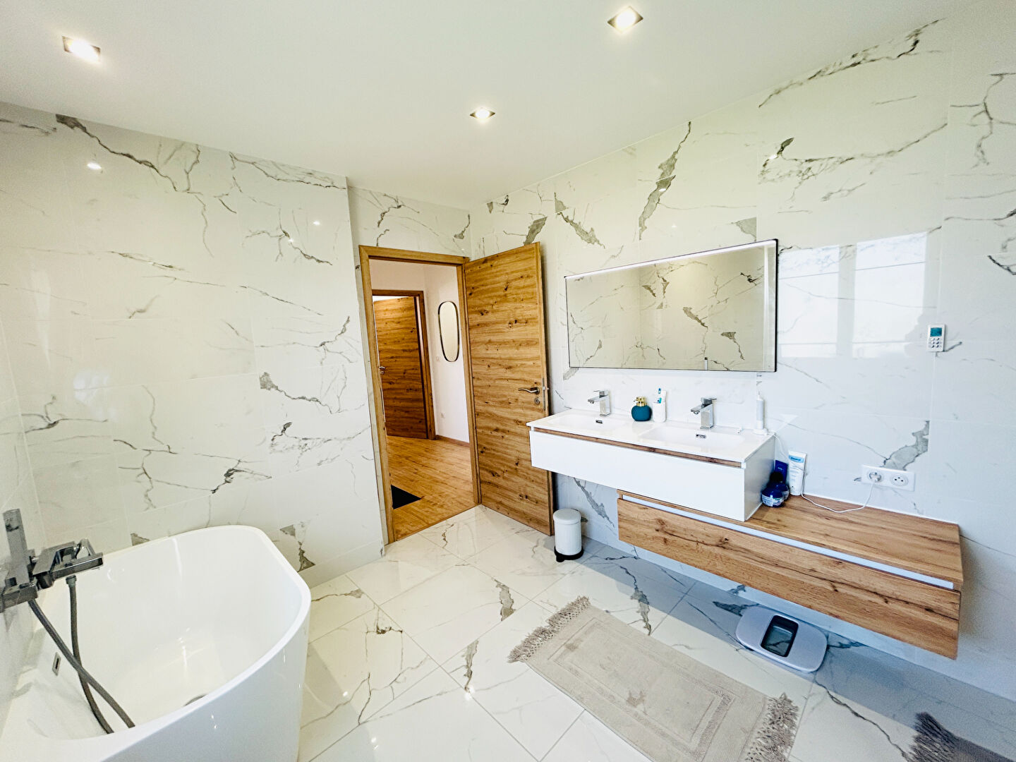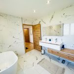 Salle de bains avec douche à l'italienne et baignoire