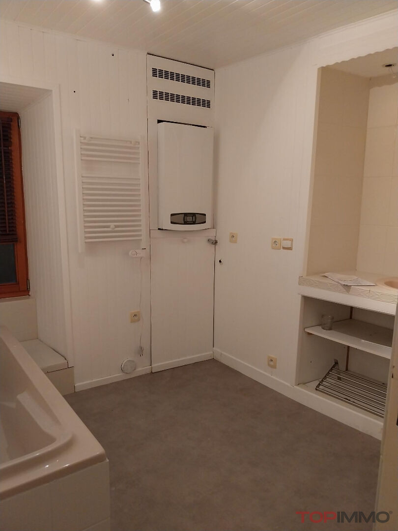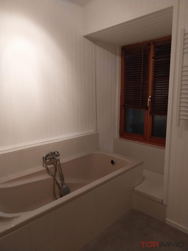 Une pièce lumineuse, une salle de bain ainsi qu'un grand garage se trouve au RDC.