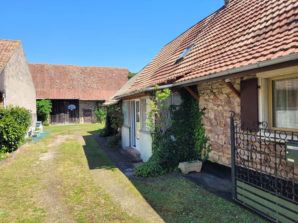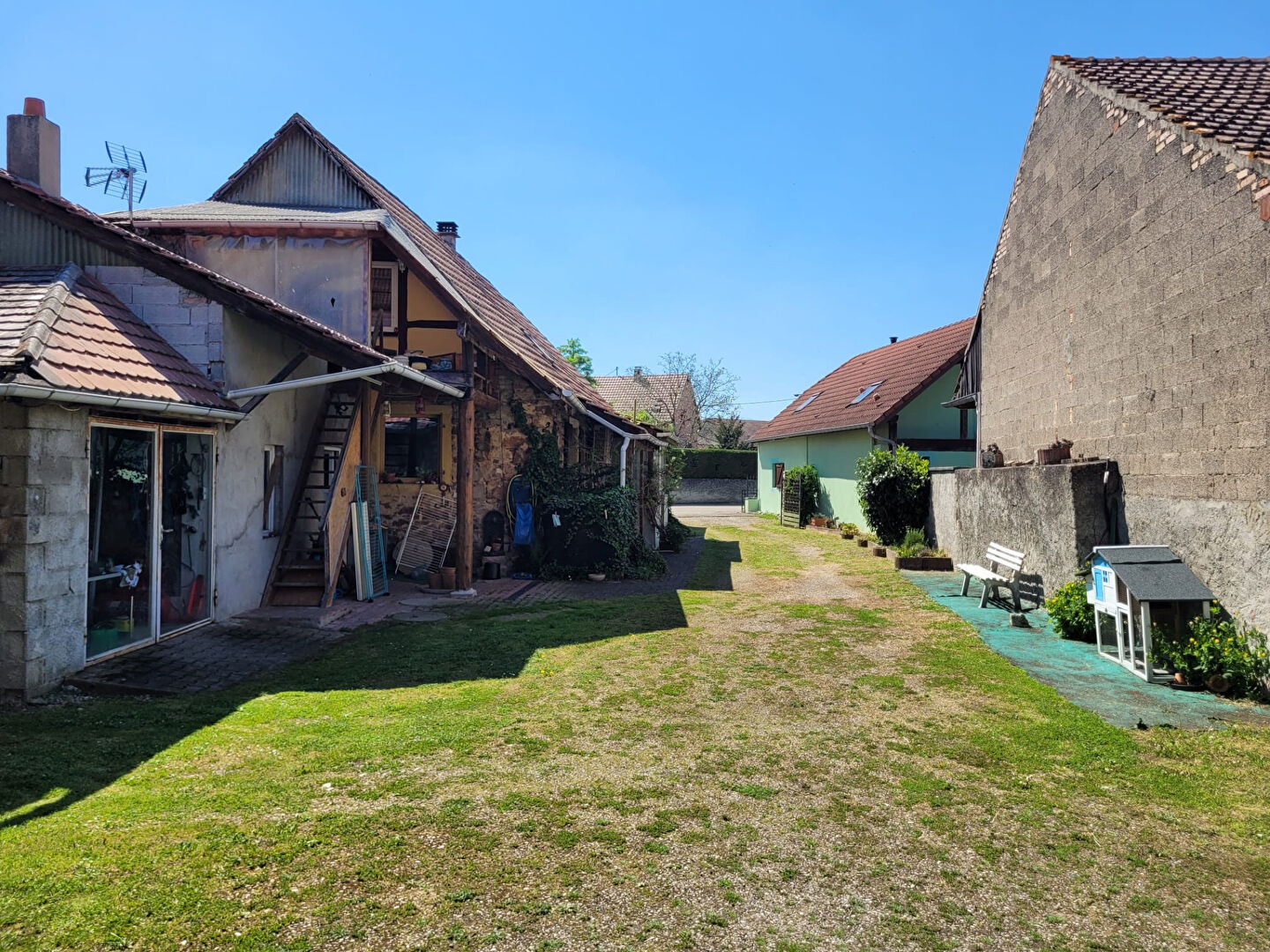 , entre Colmar et Mulhouse , et seulement 7 km de la frontière allemande , nous vous proposons cet ancien corps de ferme , qui se compose: d'une maison d'habitation d'un total de 180m² sur 2 niveaux , sous sol partiel , de divers annexes: atelier , remise , appentis ; et d'une grande grange de 200m² au sol