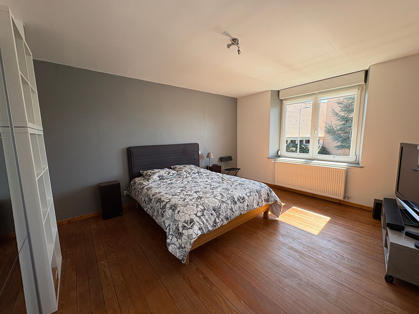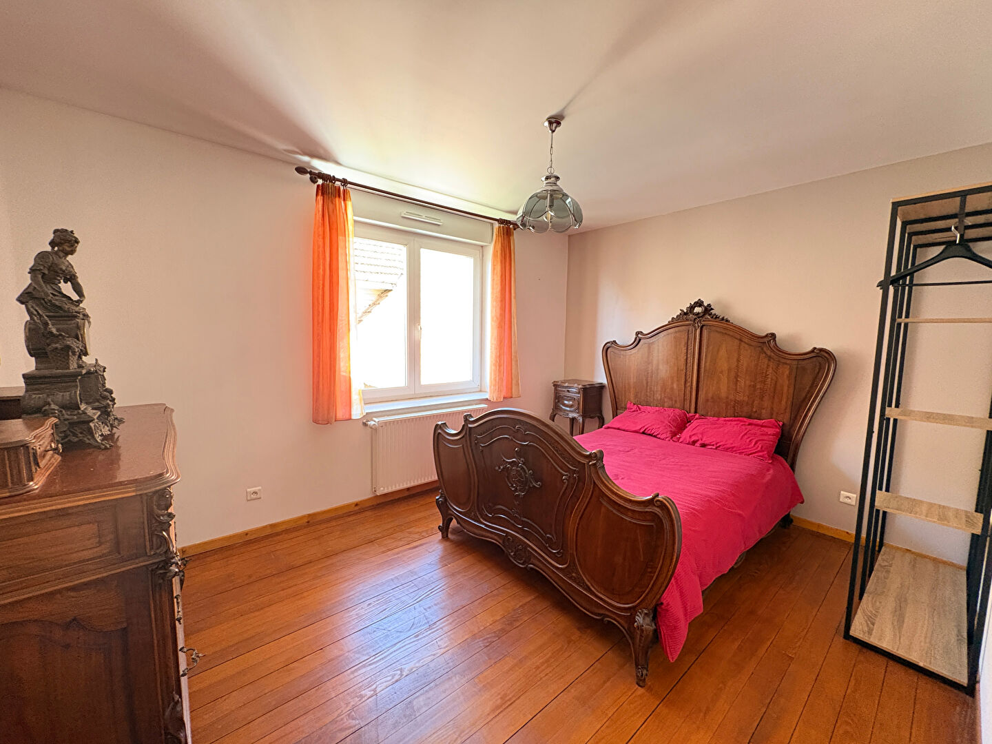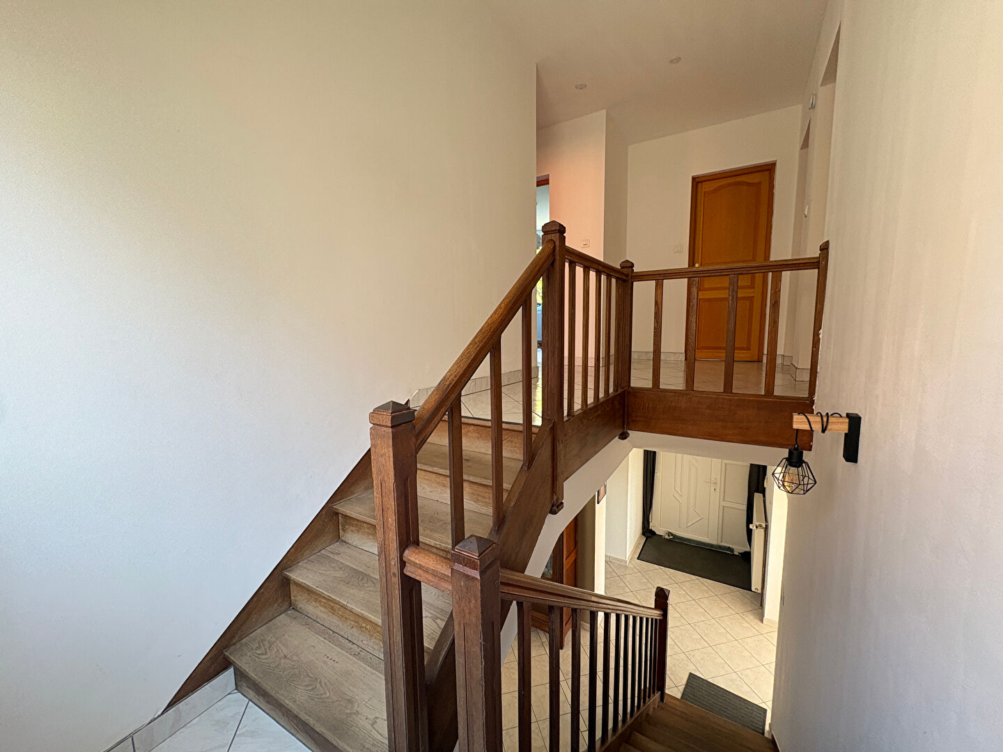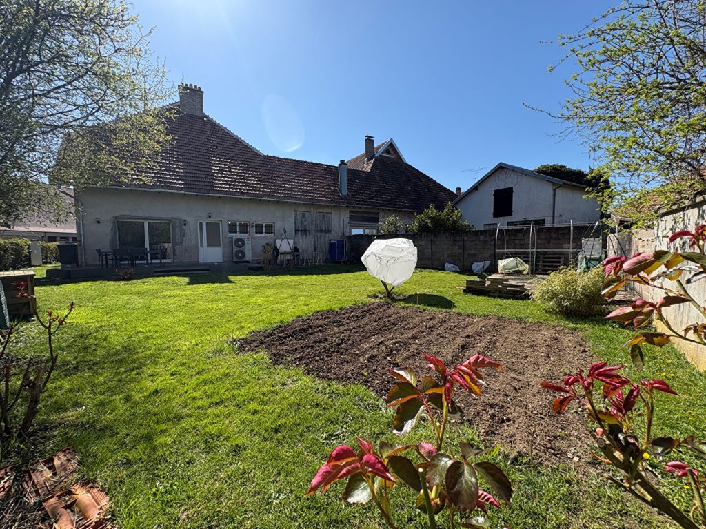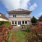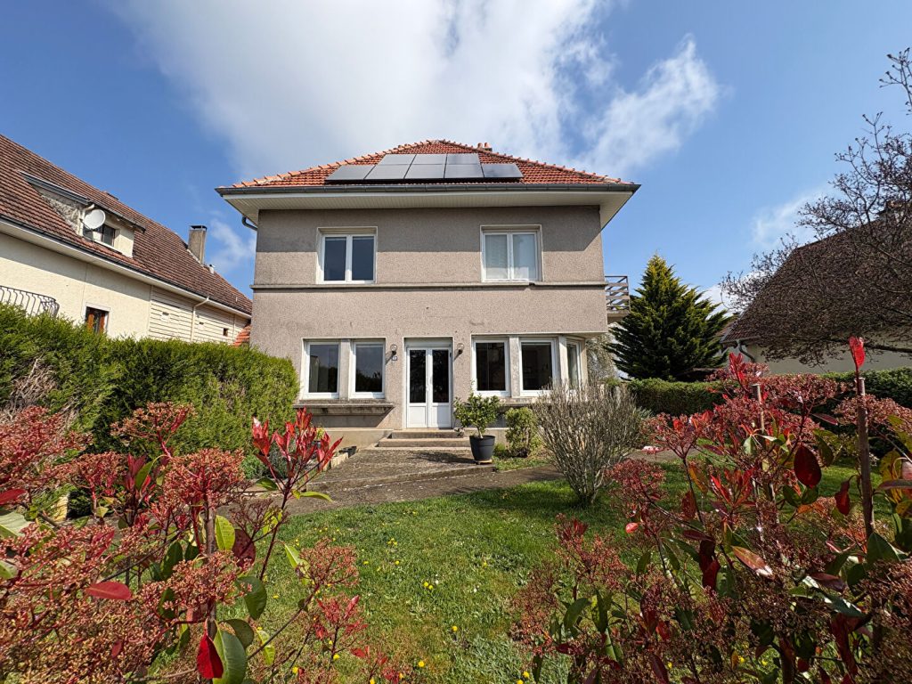 A l'étage, quatre belles chambres avec parquet massif, dont une avec balcon. Une salle d'eau avec WC complète ce niveau. Les combles sont accessibles et présentent un fort potentiel d'aménagement. La maison dispose également d'un cellier avec accès à la cave, ainsi que d'un garage équipé d'une porte automatique. A l'arrière, un jardin agréable, entièrement clos et arboré.