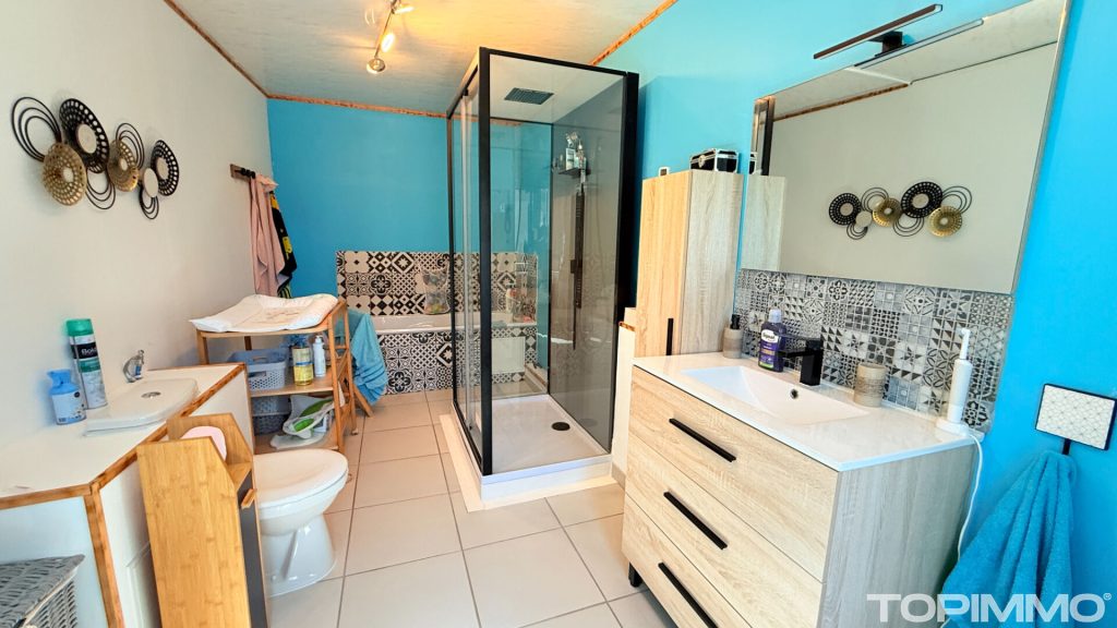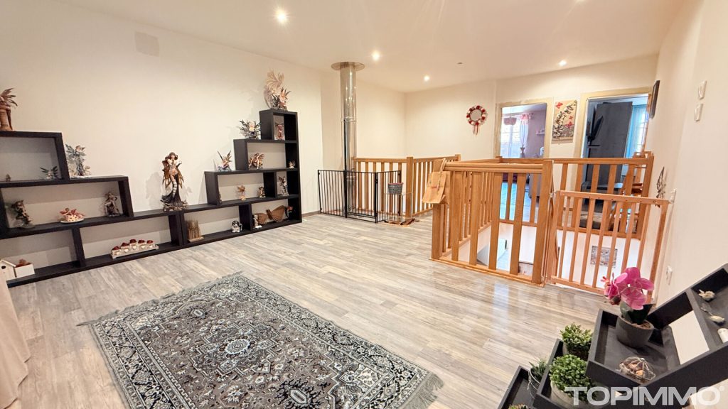 A l'étage, une grande mezzanine dessert trois belles chambres lumineuses ainsi qu'une seconde salle d'eau et wc.