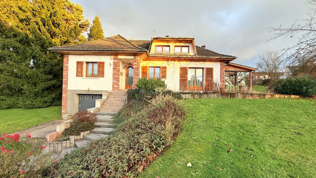 Située dans un environnement paisible et verdoyant, cette belle maison des années 70, élevée sur sous-sol complet, offre 140 m² habitables et de très beaux volumes. Elle allie confort, luminosité et potentiel.