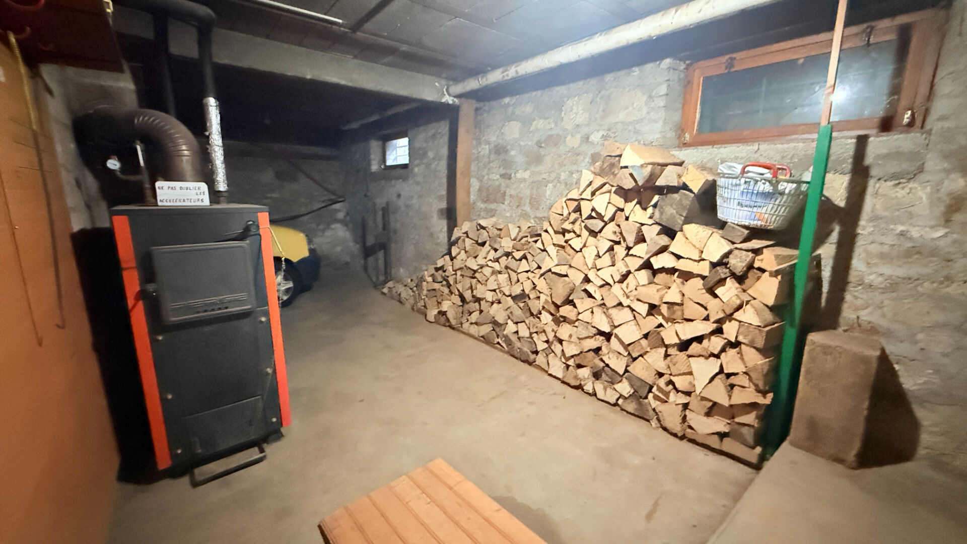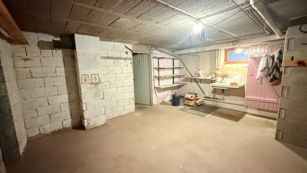 Sous-sol complet comprenant une chaufferie, buanderie avec douche, atelier, chaufferie, garage et cave.