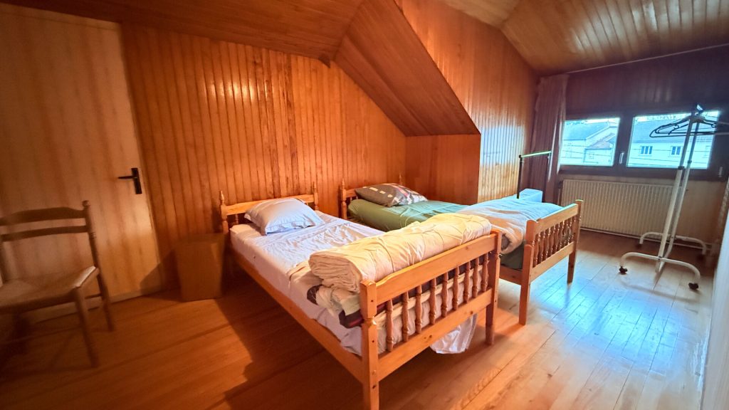 A l'étage : un palier desservant 2 chambres, un point d'eau et vaste grenier.