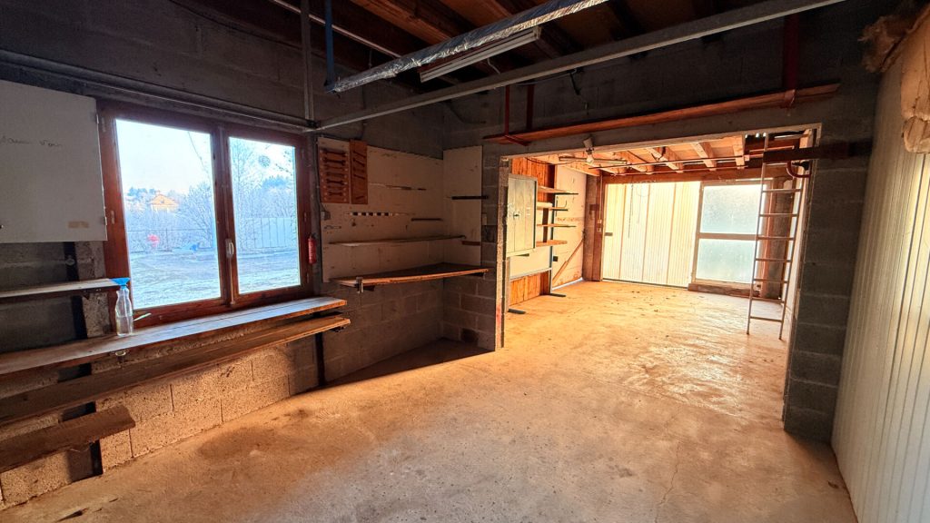 Grande dépendance comprenant un garage et un petit studio avec cuisine et deux pièces.