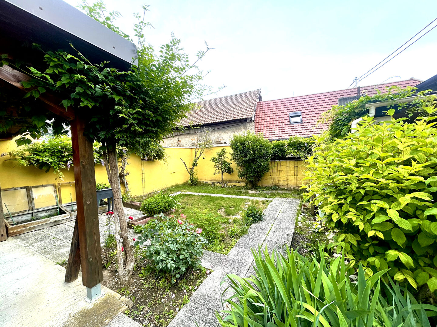 Une cour intimiste, fleurie et facile d'entretien, une terrasse couverte pour les repas en toute saison et une seconde terrasse pour profiter pleinement du soleil et se détendre.