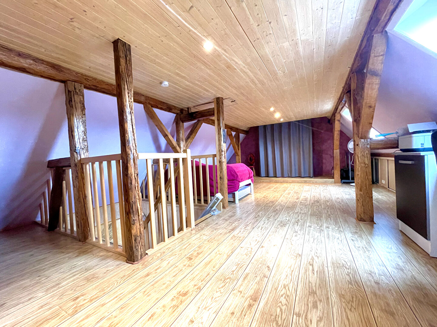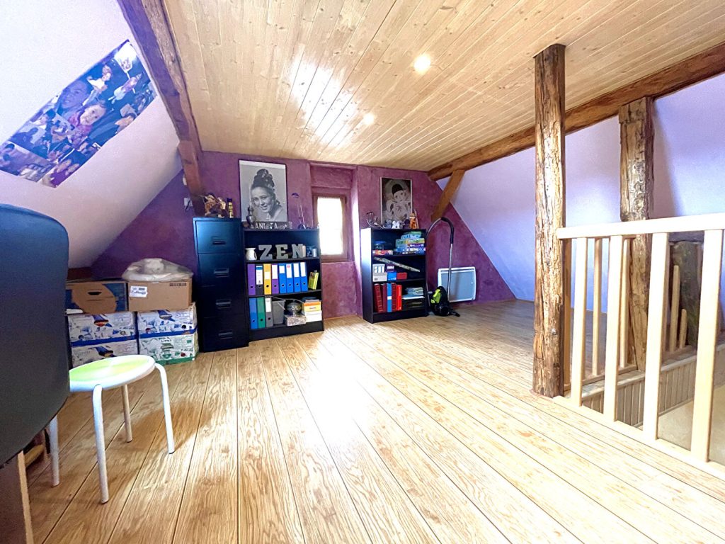 grande mezzanine ouverte avec la possibilité de créer 2 chambres , avec ses belles poutres apparentes