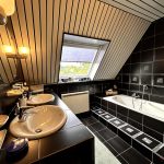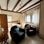 A l'étage: une mezzanine , deux chambres, une salle de bain et des toilettes.