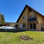 Le tout posé sur un terrain partiellement clos et arboré de 1351 m2 agrémenté d'une piscine couverte.