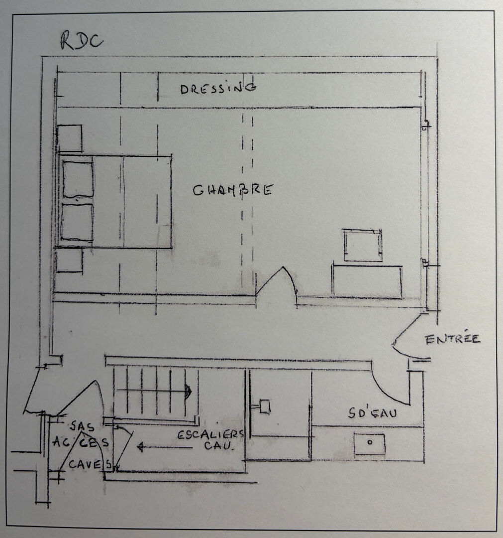 Possibilité d'aménagement : créer un appartement sur 2 niveaux en accédant par la porte de droite (plans en photos). + d'informations sur demande.