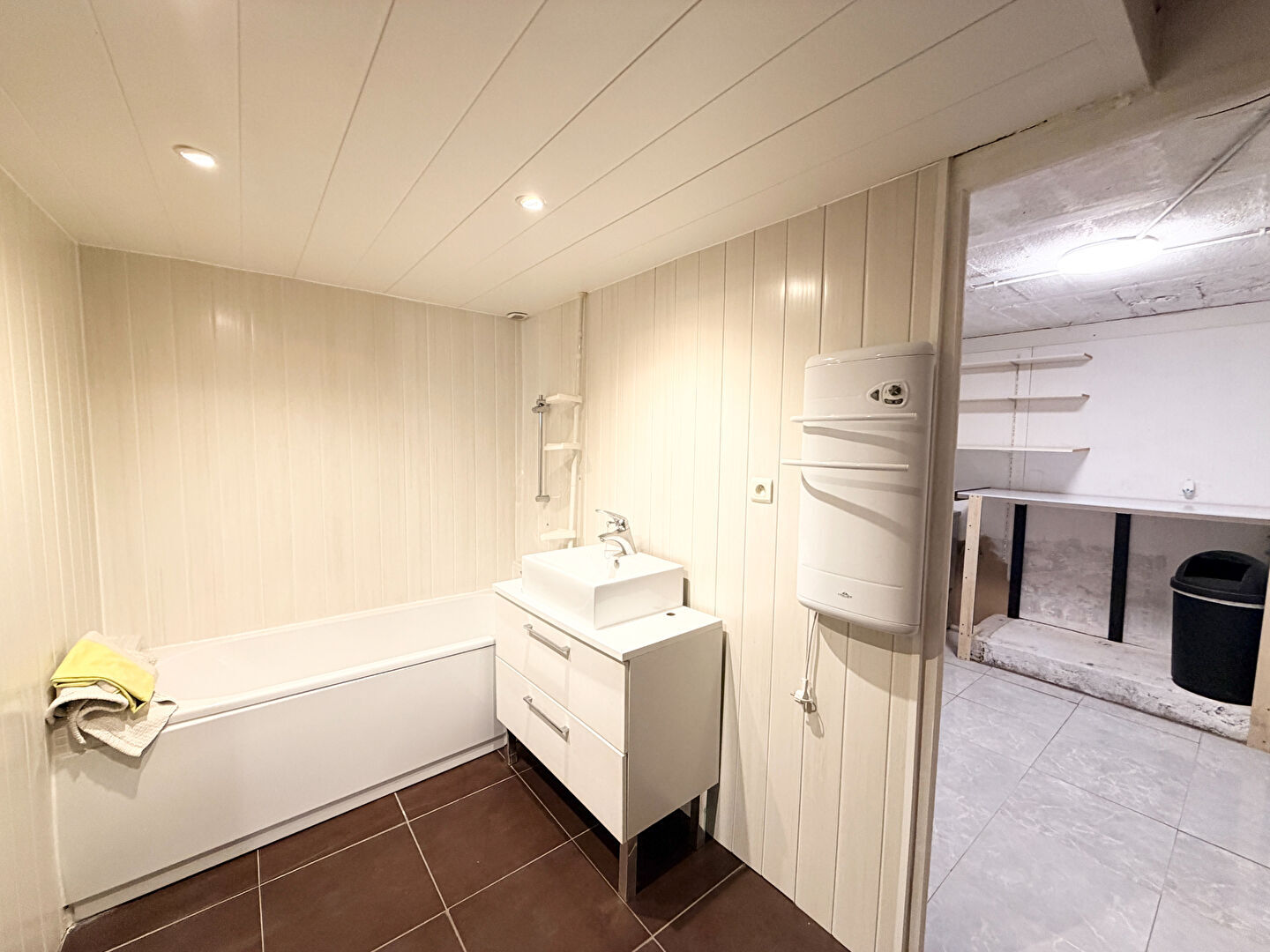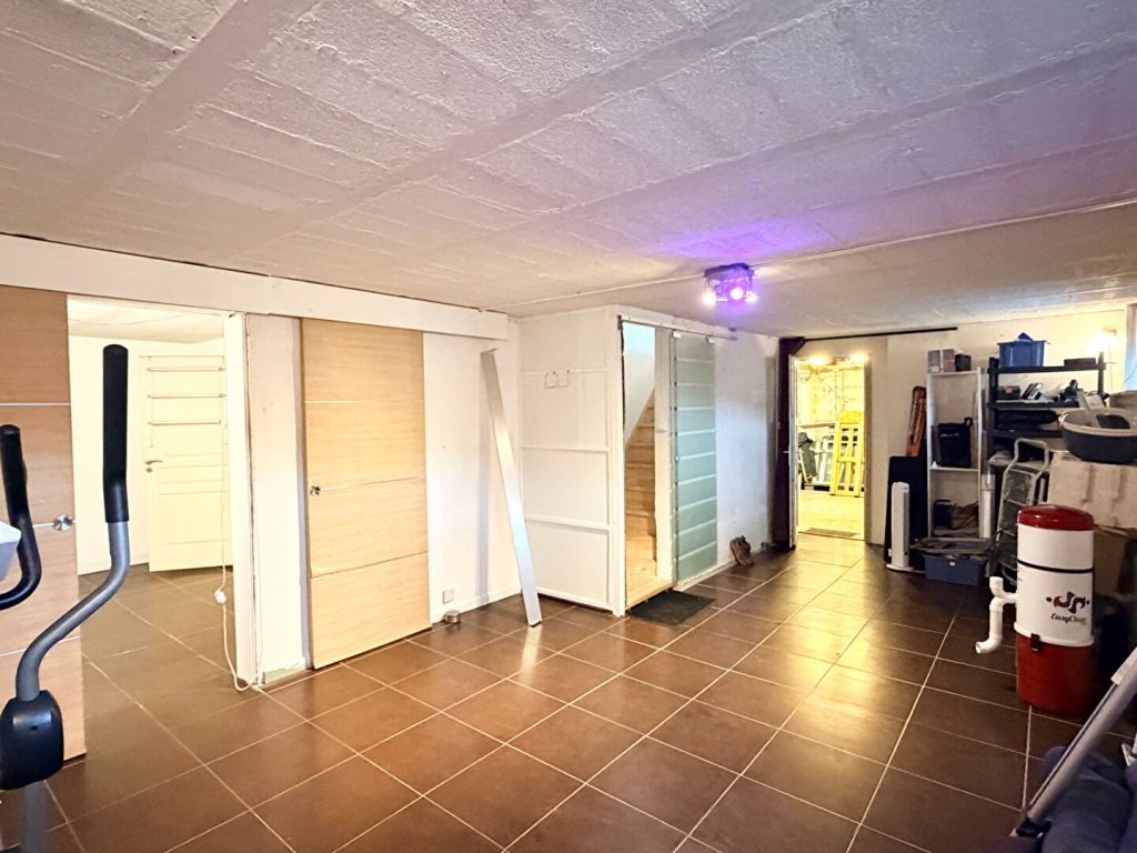 Sous-sol aménagé : un grand dégagement, une pièce aménagée en chambre, salle de bains, W.C, buanderie-laverie, garage 1 VL