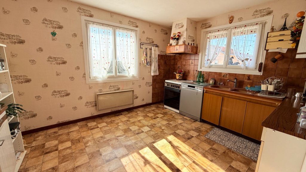 ? Au premier niveau : une entrée desservant une cuisine, un salon-séjour lumineux avec cheminée, trois chambres, une salle d'eau et un WC indépendant.