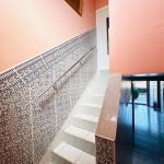 A l'étage: 2 chambres, cuisine aménagée, salon-séjour équipé d'une cheminée (foyer ouvert) avec accès balcon, salle de bains, W.C séparés.