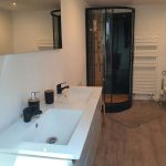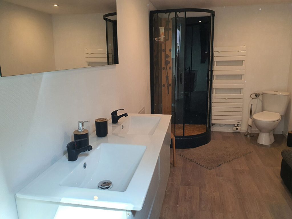 2e étage : grande chambre, salle de bains avec douche + WC.