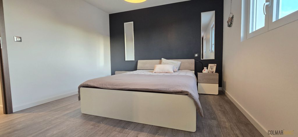 A l'étage, l'espace nuit se compose de trois chambres, d'une salle d'eau avec WC et une buanderie attenante.
