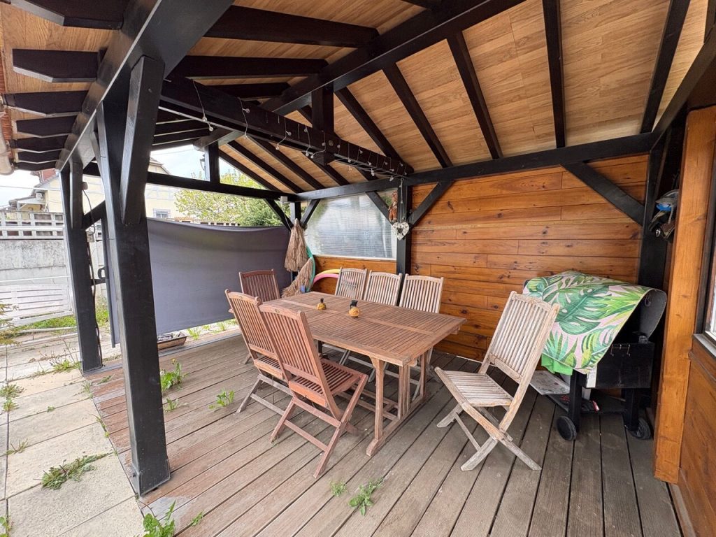 Le point fort de cette maison est son extérieur, vous apprécierez un grand jardin, parfait pour les moments de détente en famille au bord de la piscine sous sa cuisine d'été. En sus un double garage.